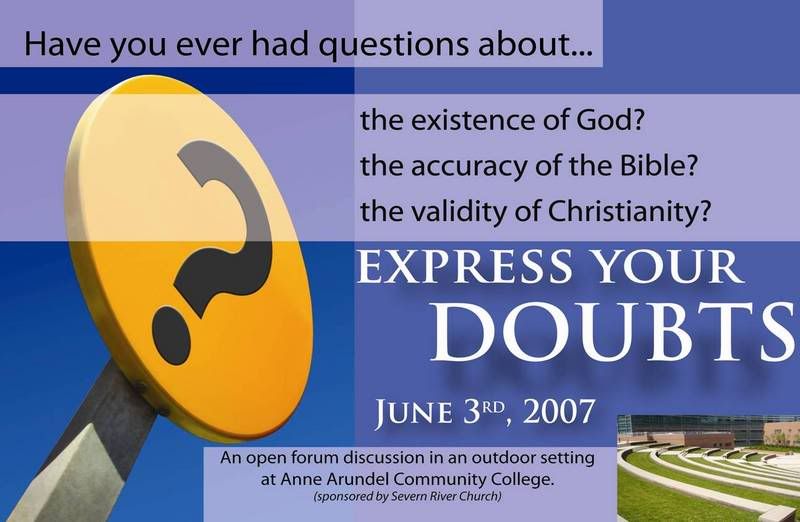 I was talking with some friends on Sunday night at a party about Doubt Day. It seems that the word is spreading. I think the idea is so simple, all we're doing is giving people a place to ask questions. It is really not much more than that. Well, behind the scenes it's a lot more than that; changing the setup, special food (fruits, muffins, cookie, etc. YUM), and studying like there's no tomorrow to be prepared for the questions that will come.