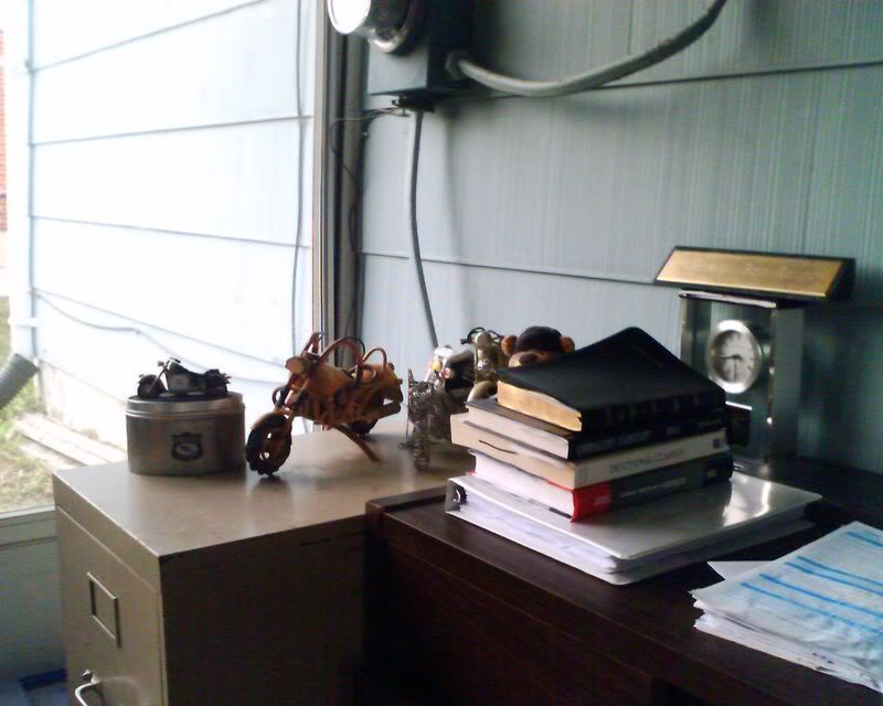 There are a few on my desk out here: The Bible (actually two copies), Courageous Leadership by: Bill Hybels, Devotional Classics, and Customer Satisfaction is Worthless Customer Loyalty is Priceless by Jeffery Gitomer.